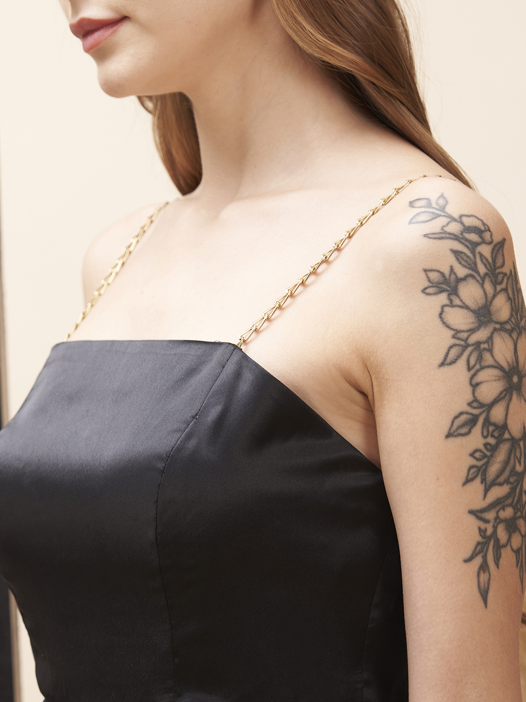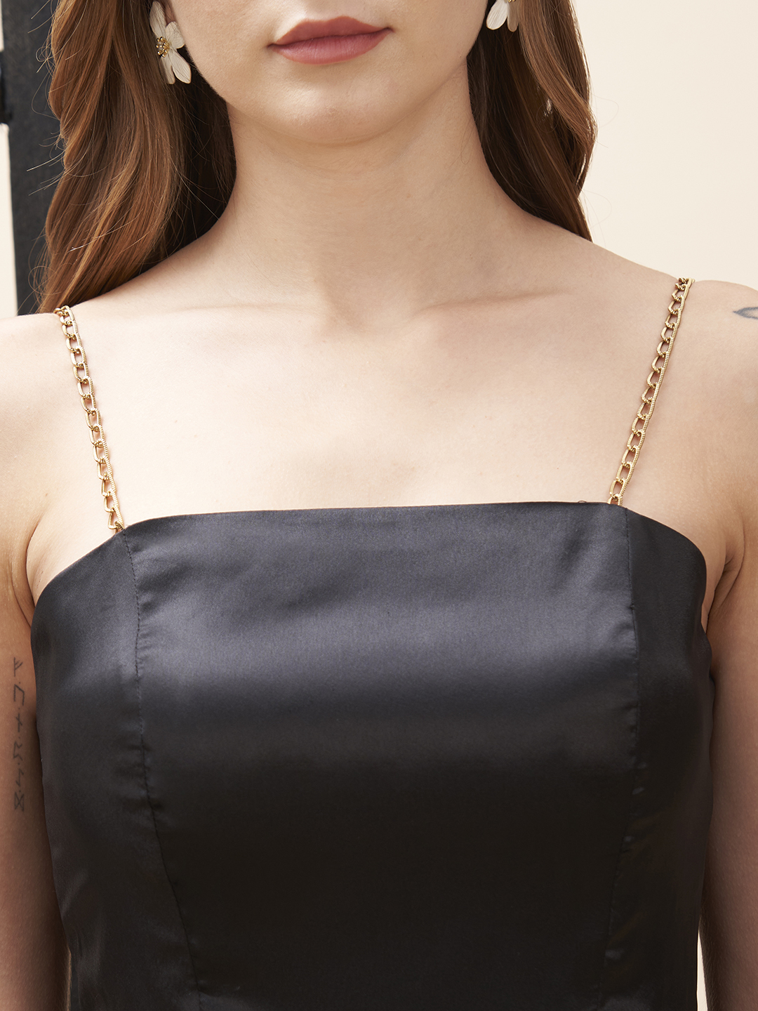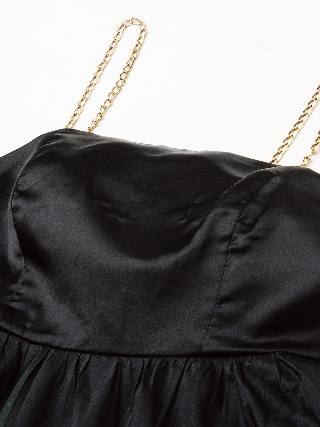 Black minidress in a cupcake design with a chain strap