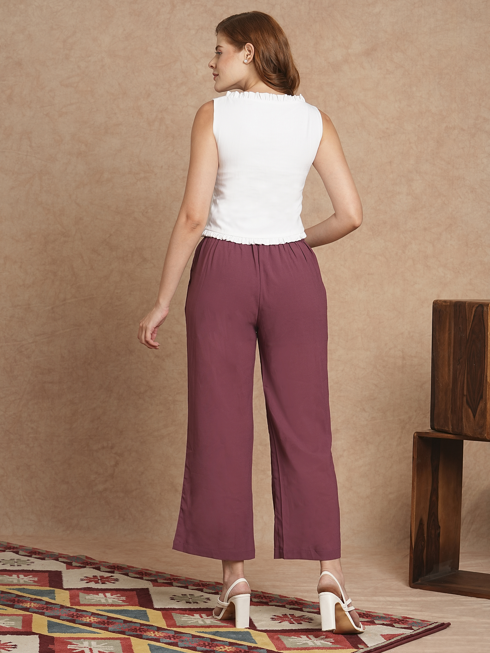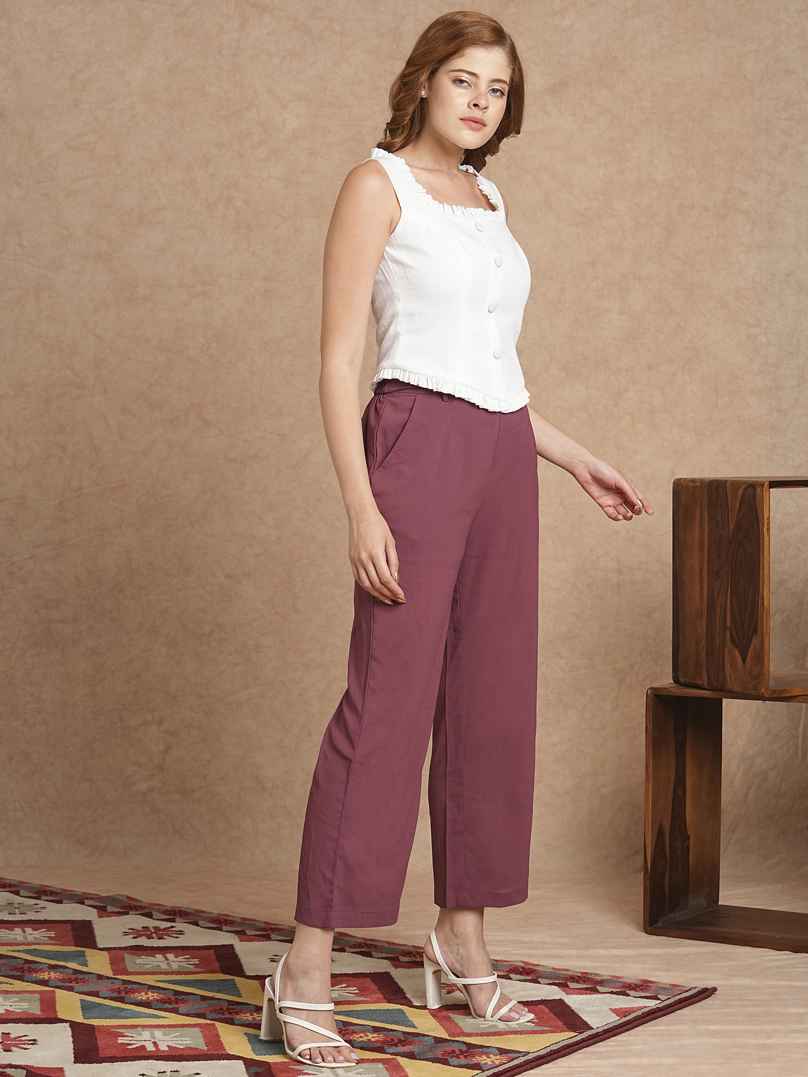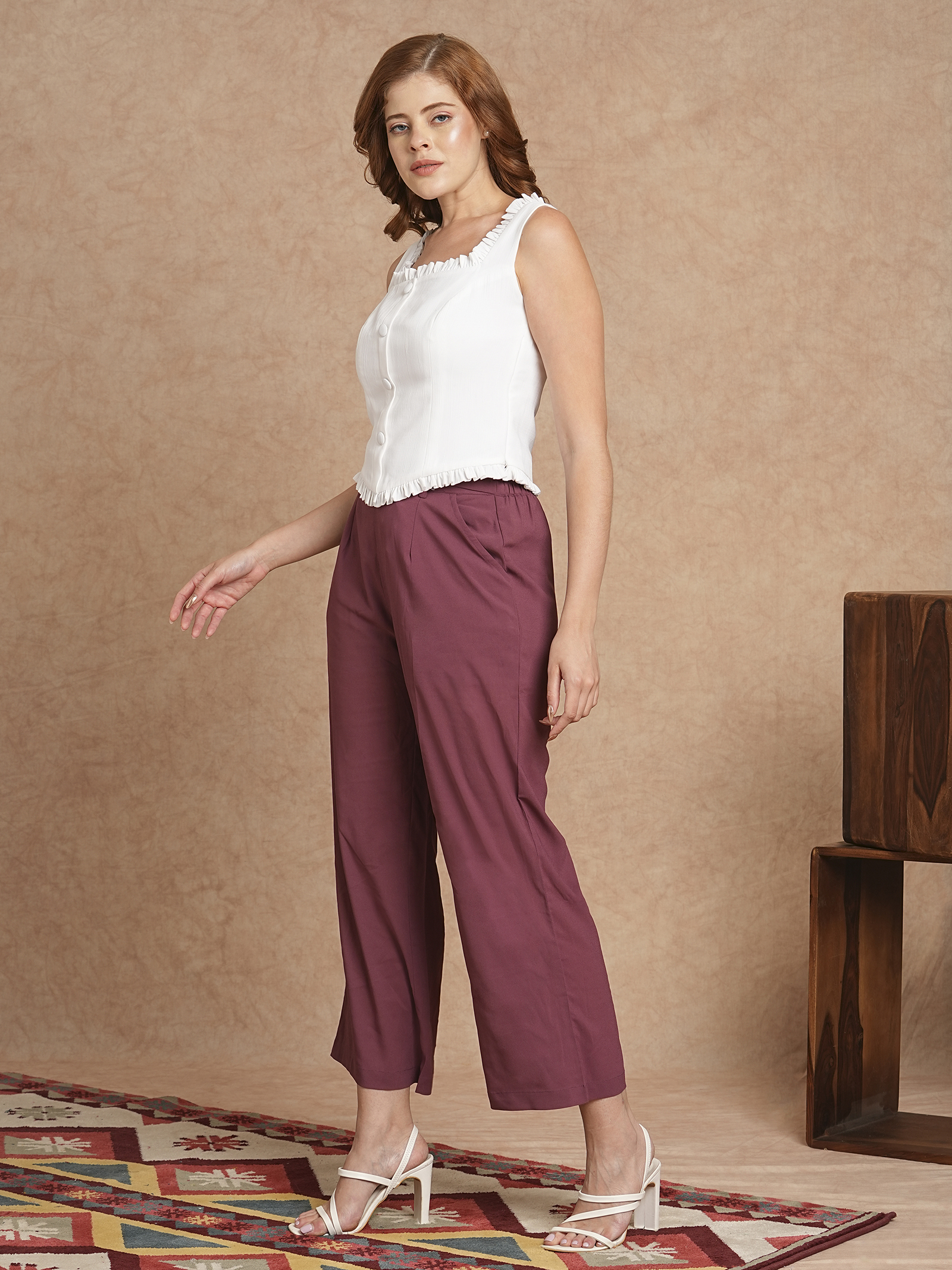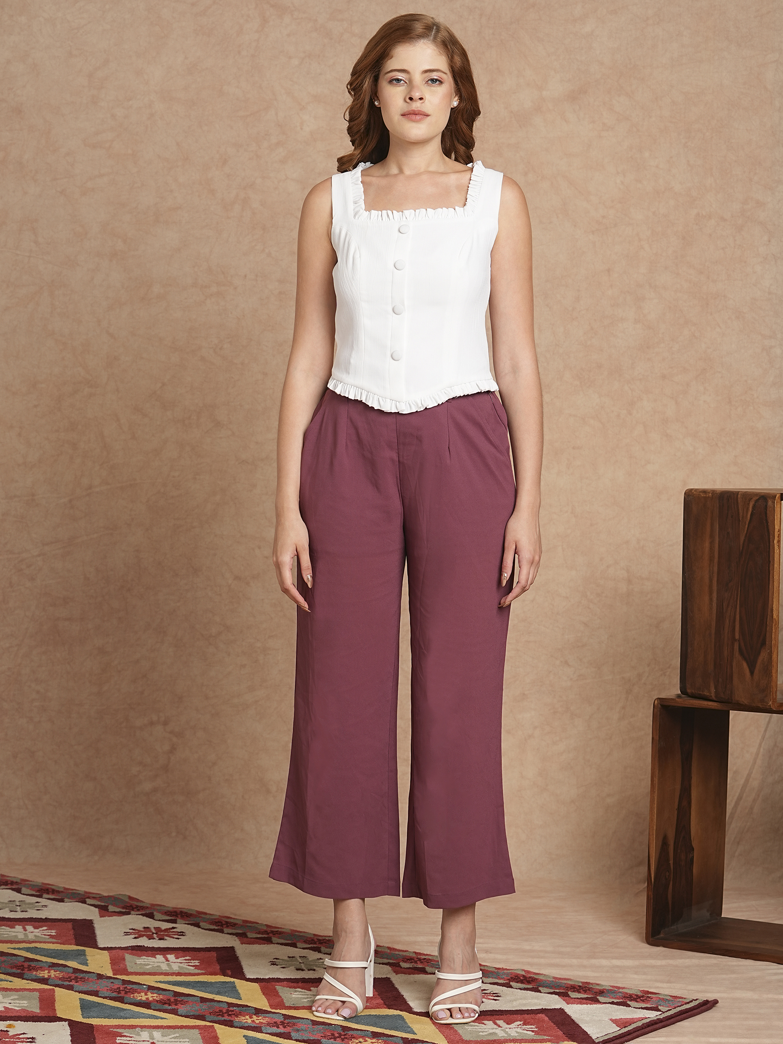 White Solid Crop Top with Square neck, sleeveless and overall frilled detailing